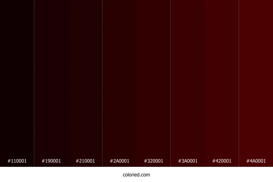 | #3A0001 | 58, 0, 1 | 359, 100%, 11% | 0%, 100%, 98%, 77% | oklch(0.219 0.089 28) | |