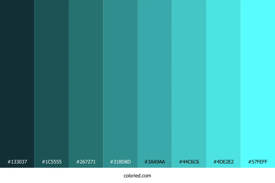 | #4DE2E2 | 77, 226, 226 | 180, 72%, 59% | 66%, 0%, 0%, 11% | oklch(0.836 0.123 195) | |