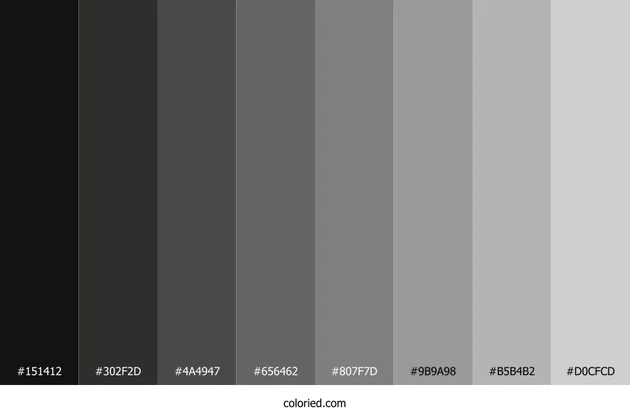 ![]() | #151412 | 21, 20, 18 | 40, 8%, 8% | 0%, 5%, 14%, 92% | oklch(0.192 0.004 85) |