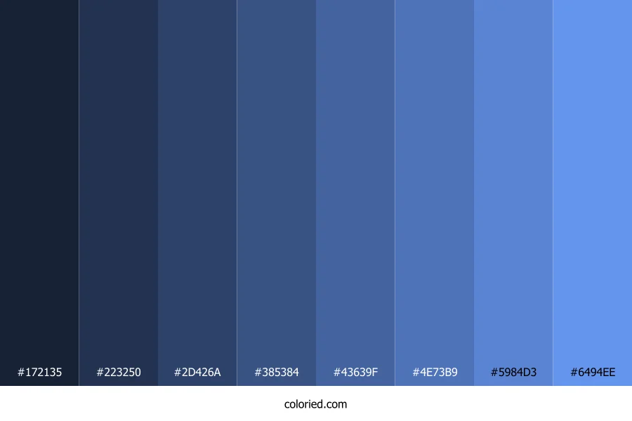 ![]() | #172135 | 23, 33, 53 | 220, 39%, 15% | 57%, 38%, 0%, 79% | oklch(0.249 0.041 263) |