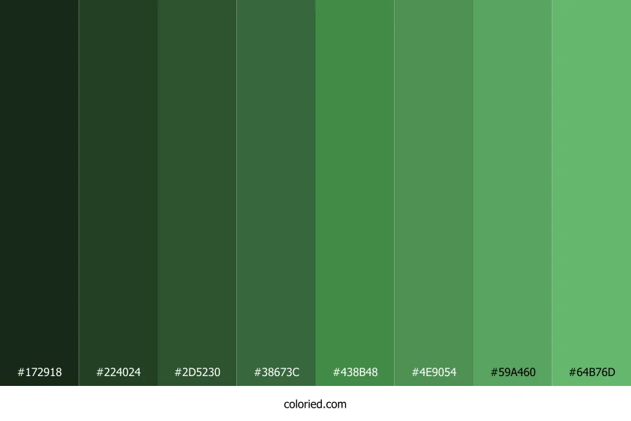 ![]() | #172918 | 23, 41, 24 | 123, 28%, 13% | 44%, 0%, 41%, 84% | oklch(0.260 0.039 146) |