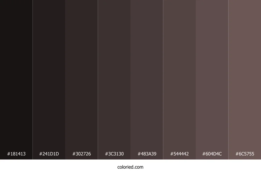 | #3C3130 | 60, 49, 48 | 5, 11%, 21% | 0%, 18%, 20%, 76% | oklch(0.325 0.016 24) | |