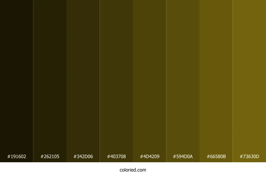 | #73630D | 115, 99, 13 | 51, 80%, 25% | 0%, 14%, 89%, 55% | oklch(0.500 0.099 97) |