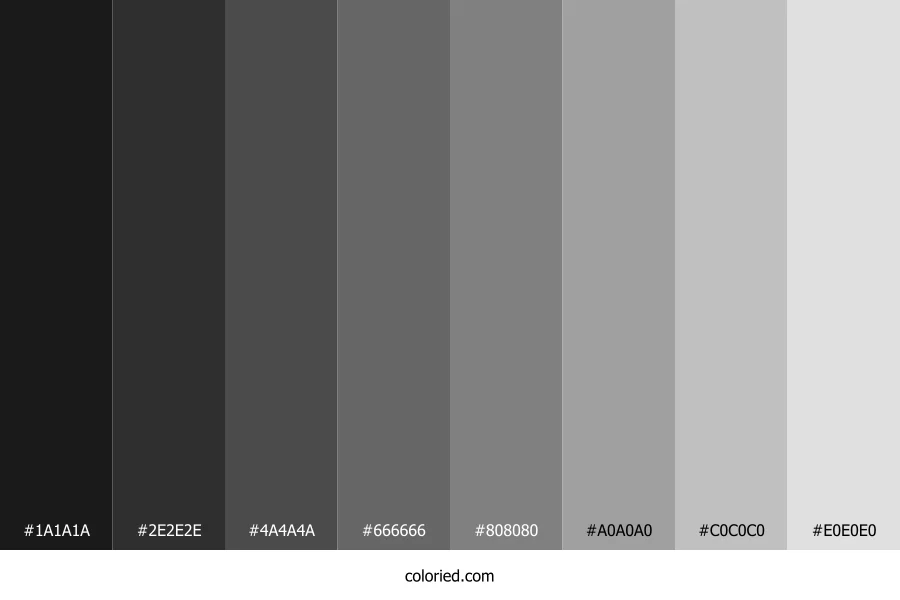 ![]() | #1A1A1A | 26, 26, 26 | 0, 0%, 10% | 0%, 0%, 0%, 90% | oklch(0.218 0.000 263) |