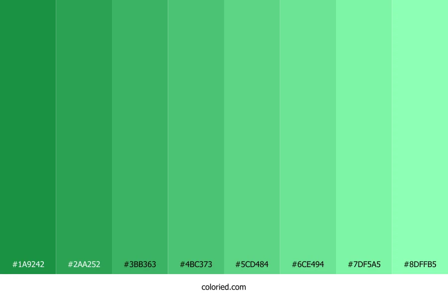 ![]() | #1A9242 | 26, 146, 66 | 140, 70%, 34% | 82%, 0%, 55%, 43% | oklch(0.580 0.155 149) |