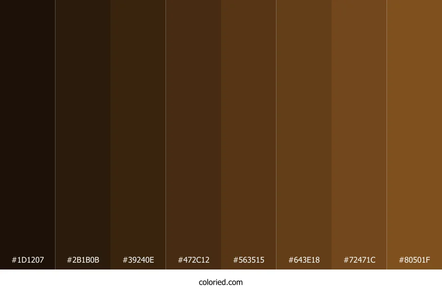 ![]() | #1D1207 | 29, 18, 7 | 30, 61%, 7% | 0%, 38%, 76%, 89% | oklch(0.194 0.027 66) |