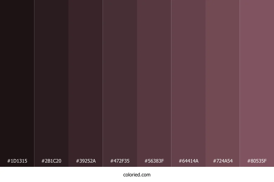 | #80535F | 128, 83, 95 | 344, 21%, 41% | 0%, 35%, 26%, 50% | oklch(0.496 0.062 2) |