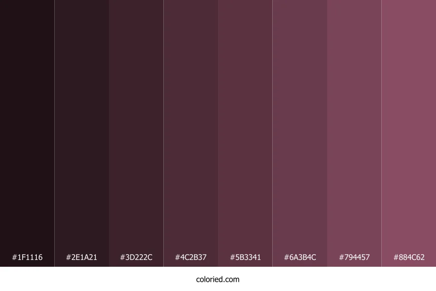| #884C62 | 136, 76, 98 | 338, 28%, 42% | 0%, 44%, 28%, 47% | oklch(0.494 0.085 357) |