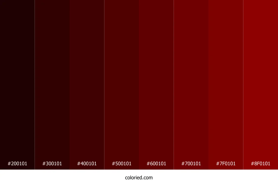 | #600101 | 96, 1, 1 | 0, 98%, 19% | 0%, 99%, 99%, 62% | oklch(0.308 0.125 29) | |