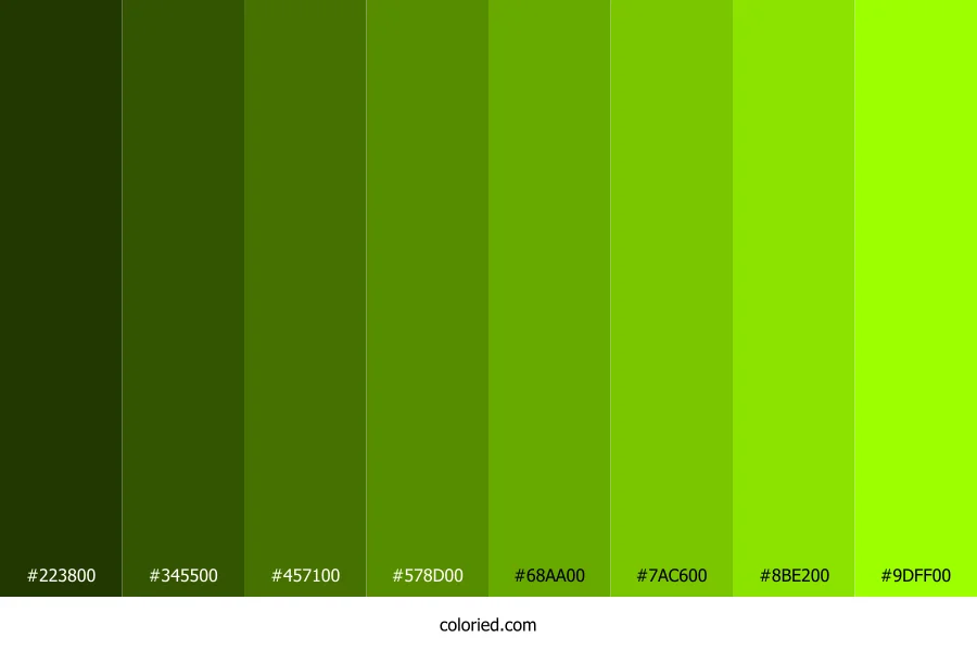 | #8BE200 | 139, 226, 0 | 83, 100%, 44% | 38%, 0%, 100%, 11% | oklch(0.825 0.229 132) | |