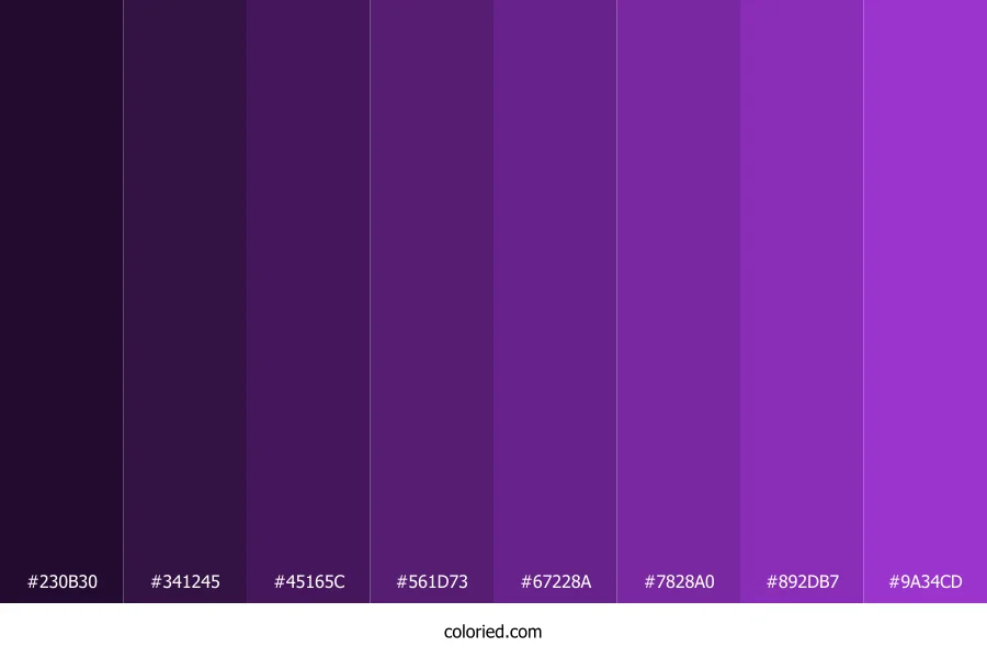 | #892DB7 | 137, 45, 183 | 280, 61%, 45% | 25%, 75%, 0%, 28% | oklch(0.500 0.208 311) | |