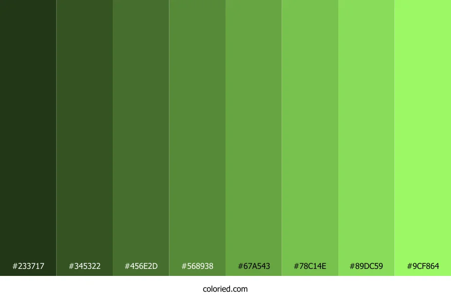 ![]() | #233717 | 35, 55, 23 | 98, 41%, 15% | 36%, 0%, 58%, 78% | oklch(0.311 0.059 135) |