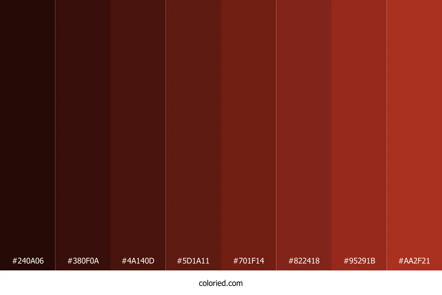 ![]() | #240A06 | 36, 10, 6 | 8, 71%, 8% | 0%, 72%, 83%, 86% | oklch(0.187 0.046 32) |