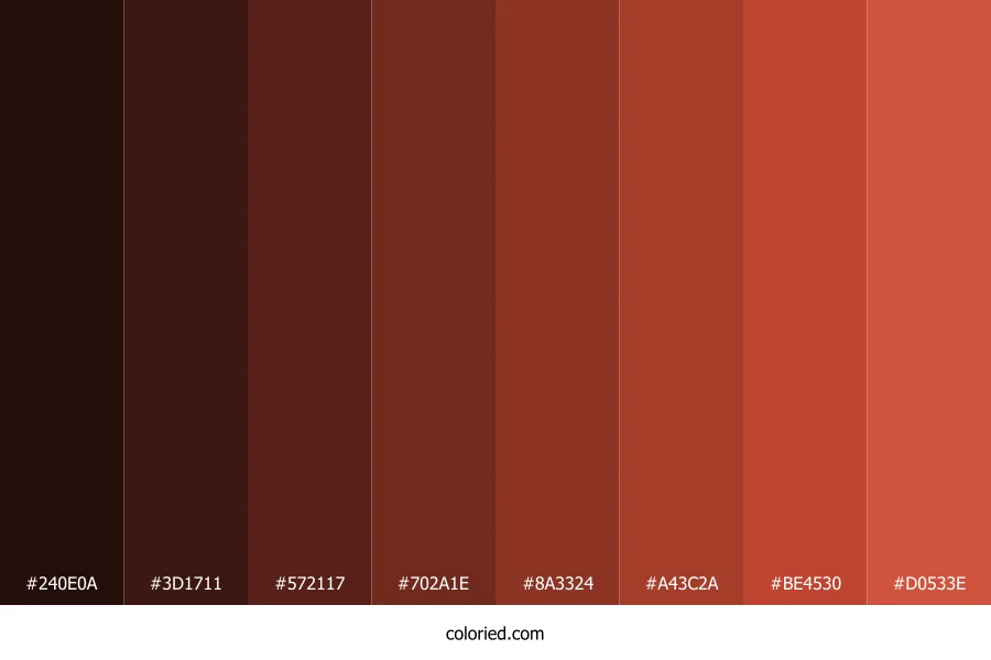 ![]() | #240E0A | 36, 14, 10 | 9, 57%, 9% | 0%, 61%, 72%, 86% | oklch(0.197 0.038 32) |
