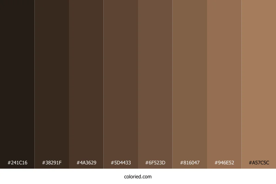 ![]() | #241C16 | 36, 28, 22 | 26, 24%, 11% | 0%, 22%, 39%, 86% | oklch(0.234 0.017 59) |