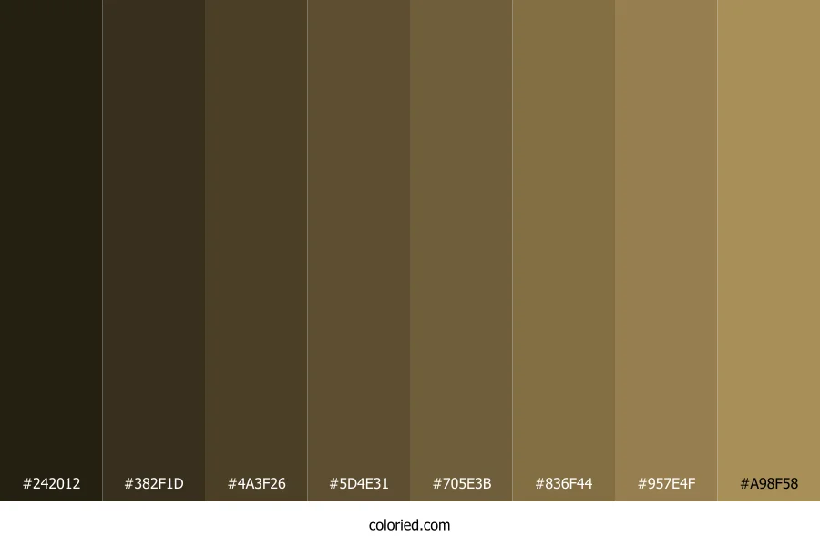 ![]() | #242012 | 36, 32, 18 | 47, 33%, 11% | 0%, 11%, 50%, 86% | oklch(0.244 0.025 94) |