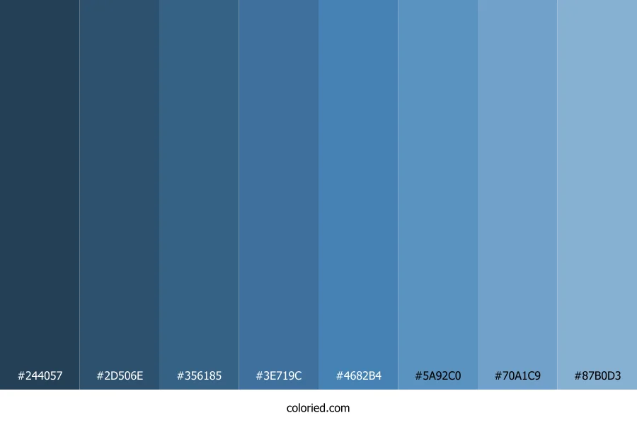 | #4682B4 | 70, 130, 180 | 207, 44%, 49% | 61%, 28%, 0%, 29% | oklch(0.588 0.099 246) | |