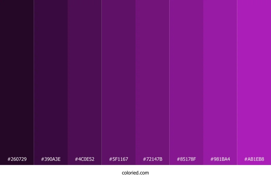 | #AB1EB8 | 171, 30, 184 | 295, 72%, 42% | 7%, 84%, 0%, 28% | oklch(0.539 0.235 324) |