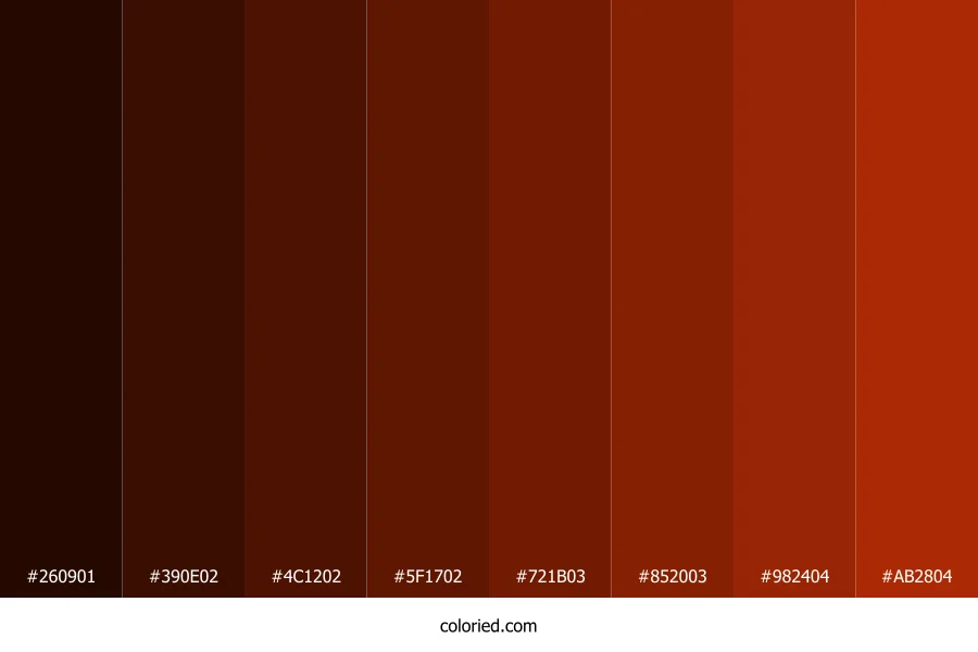 | #721B03 | 114, 27, 3 | 13, 95%, 23% | 0%, 76%, 97%, 55% | oklch(0.366 0.125 35) | |