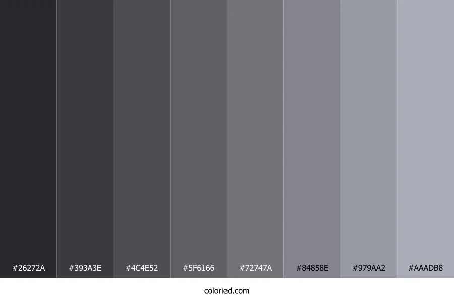 | #AAADB8 | 170, 173, 184 | 227, 9%, 69% | 8%, 6%, 0%, 28% | oklch(0.749 0.016 274) |