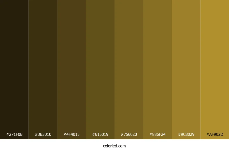 | #886F24 | 136, 111, 36 | 45, 58%, 34% | 0%, 18%, 74%, 47% | oklch(0.552 0.097 90) | |