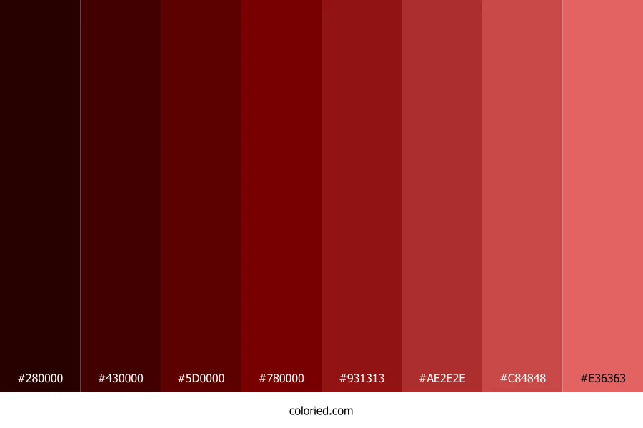 | #AE2E2E | 174, 46, 46 | 0, 58%, 43% | 0%, 74%, 74%, 32% | oklch(0.501 0.165 25) | |