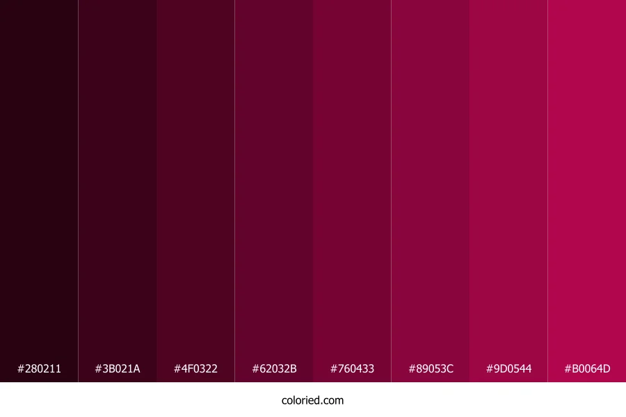 | #9D0544 | 157, 5, 68 | 335, 94%, 32% | 0%, 97%, 57%, 38% | oklch(0.448 0.177 7) | |
