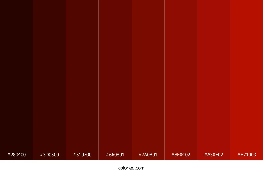 | #8E0C02 | 142, 12, 2 | 4, 97%, 28% | 0%, 92%, 99%, 44% | oklch(0.411 0.162 30) | |