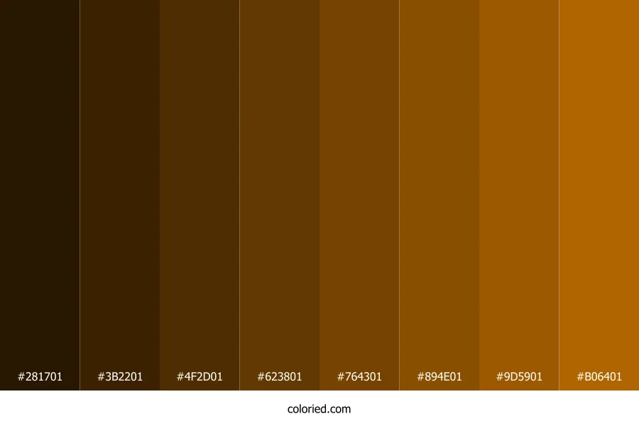 | #3B2201 | 59, 34, 1 | 34, 97%, 12% | 0%, 42%, 98%, 77% | oklch(0.278 0.059 69) | |