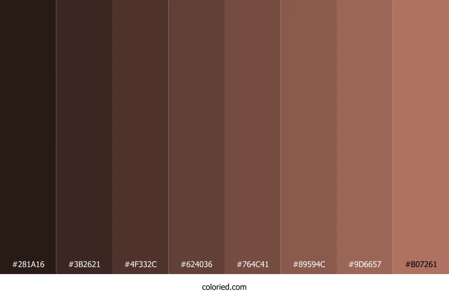 | #B07261 | 176, 114, 97 | 13, 33%, 54% | 0%, 35%, 45%, 31% | oklch(0.613 0.083 36) |