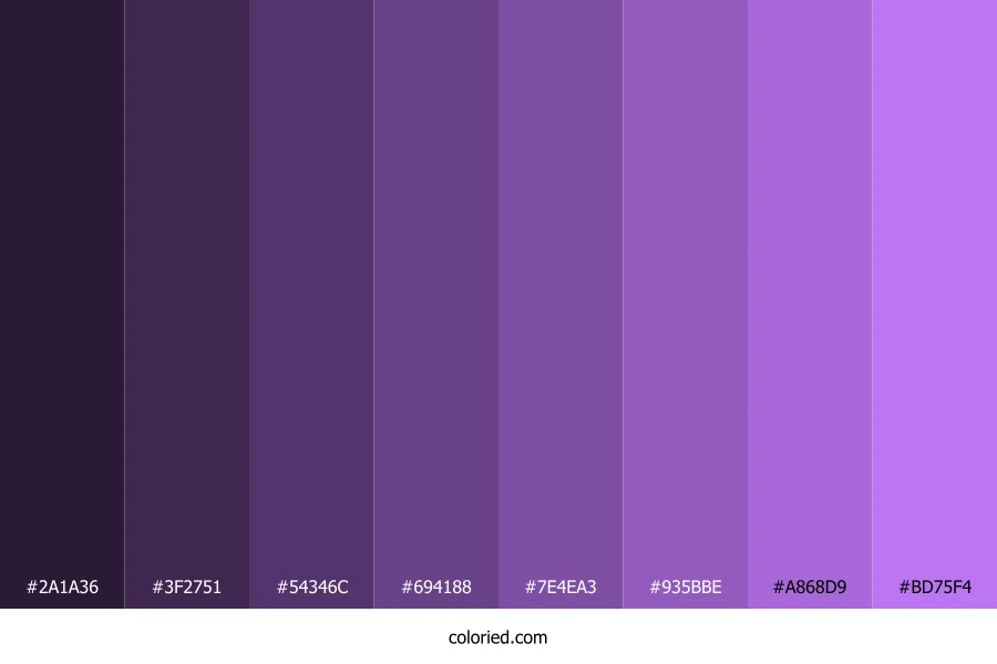 ![]() | #2A1A36 | 42, 26, 54 | 274, 35%, 16% | 22%, 52%, 0%, 79% | oklch(0.252 0.055 309) |