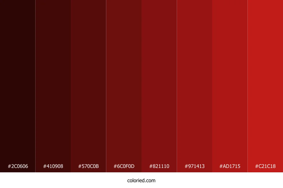 | #570C0B | 87, 12, 11 | 1, 78%, 19% | 0%, 86%, 87%, 66% | oklch(0.298 0.107 27) | |