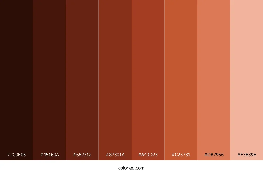 ![]() | #2C0E05 | 44, 14, 5 | 14, 80%, 10% | 0%, 68%, 89%, 83% | oklch(0.210 0.053 39) |