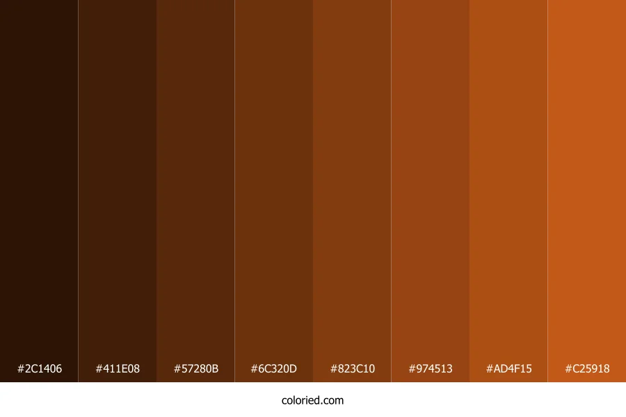 | #AD4F15 | 173, 79, 21 | 23, 78%, 38% | 0%, 54%, 88%, 32% | oklch(0.539 0.139 47) | |
