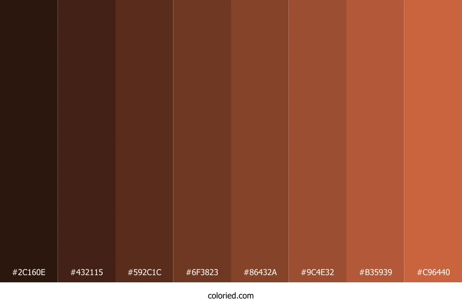 ![]() | #2C160E | 44, 22, 14 | 16, 52%, 11% | 0%, 50%, 68%, 83% | oklch(0.229 0.039 41) |