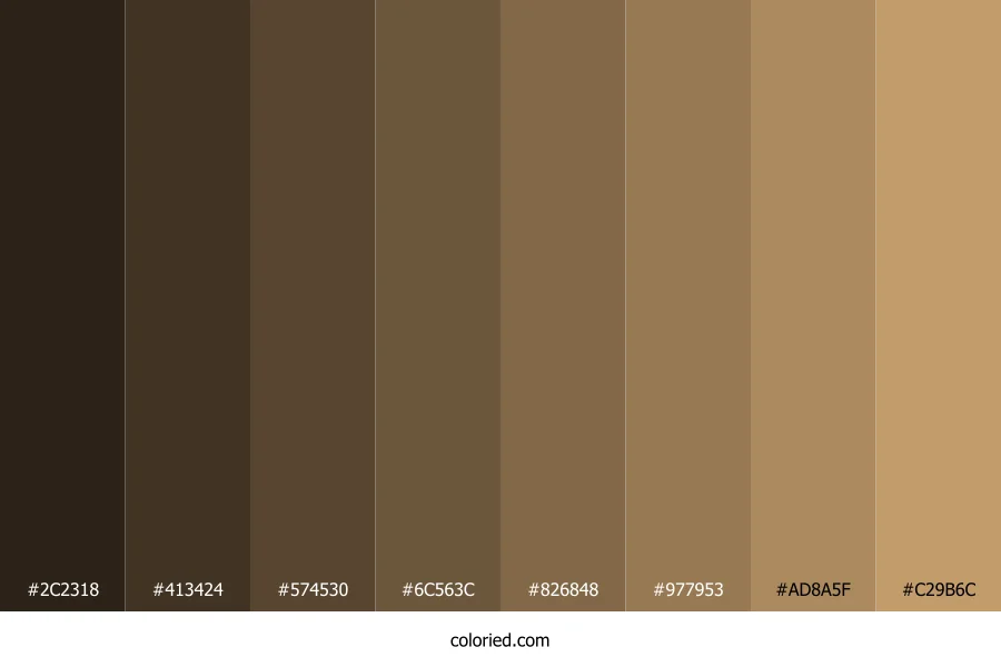 ![]() | #2C2318 | 44, 35, 24 | 33, 29%, 13% | 0%, 20%, 45%, 83% | oklch(0.263 0.024 72) |