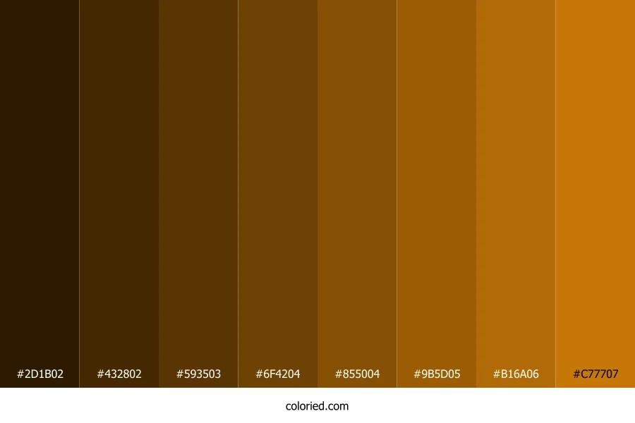 ![]() | #2D1B02 | 45, 27, 2 | 35, 91%, 9% | 0%, 40%, 96%, 82% | oklch(0.240 0.048 73) |