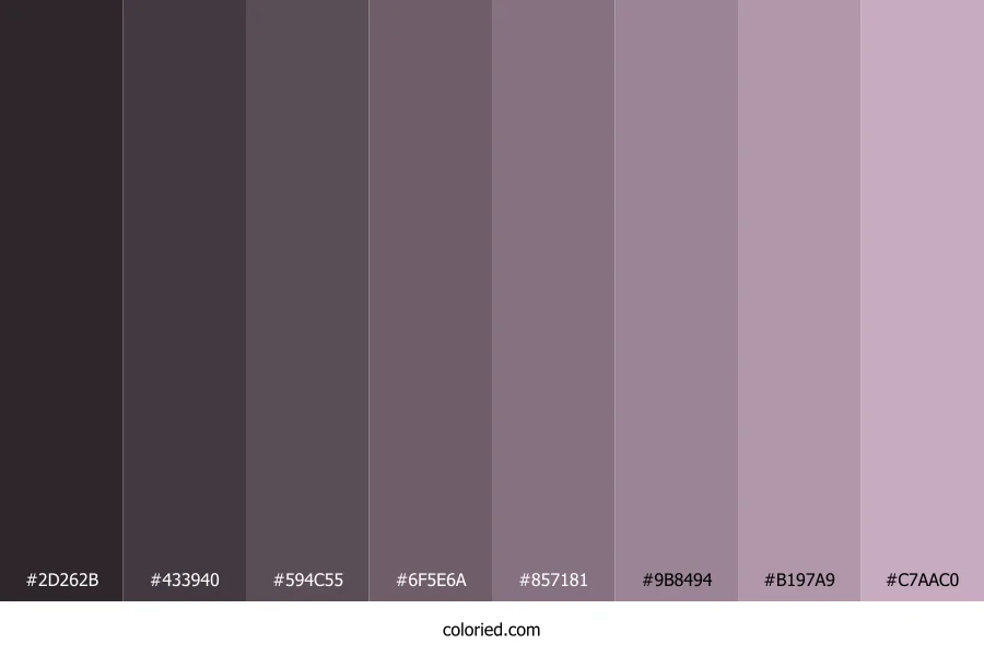![]() | #2D262B | 45, 38, 43 | 317, 8%, 16% | 0%, 16%, 4%, 82% | oklch(0.278 0.014 336) |