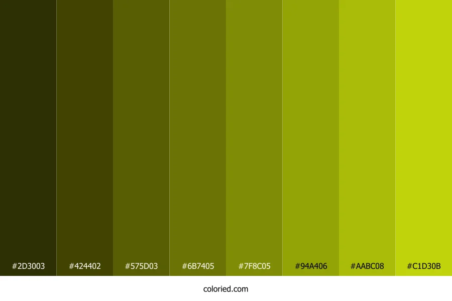 | #C1D30B | 193, 211, 11 | 65, 90%, 44% | 9%, 0%, 95%, 17% | oklch(0.825 0.187 116) |