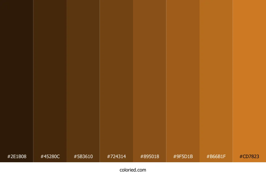 | #CD7823 | 205, 120, 35 | 30, 71%, 47% | 0%, 41%, 83%, 20% | oklch(0.653 0.140 60) |