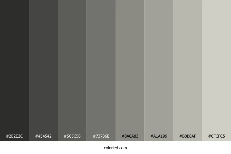 ![]() | #2E2E2C | 46, 46, 44 | 60, 2%, 18% | 0%, 0%, 4%, 82% | oklch(0.300 0.004 107) |
