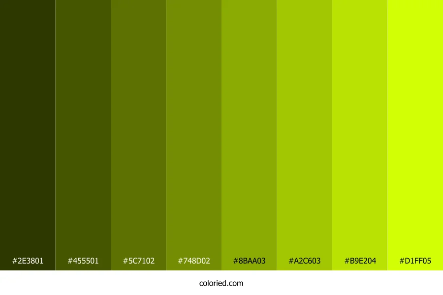 | #5C7102 | 92, 113, 2 | 71, 97%, 23% | 19%, 0%, 98%, 56% | oklch(0.513 0.123 122) | |