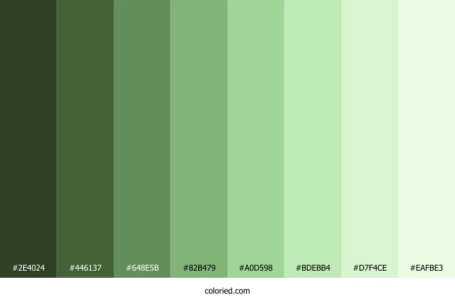 ![]() | #2E4024 | 46, 64, 36 | 99, 28%, 20% | 28%, 0%, 44%, 75% | oklch(0.348 0.052 135) |