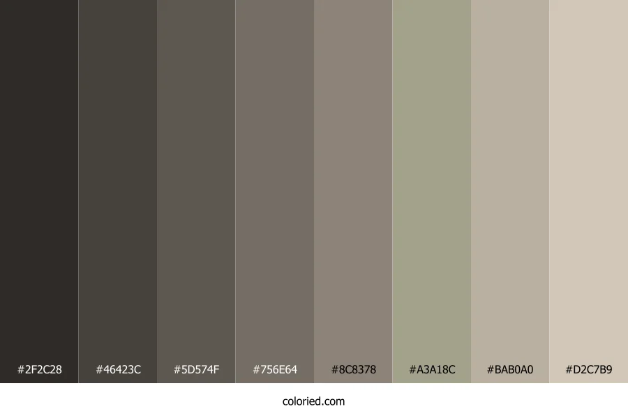 ![]() | #2F2C28 | 47, 44, 40 | 34, 8%, 17% | 0%, 6%, 15%, 82% | oklch(0.295 0.008 75) |