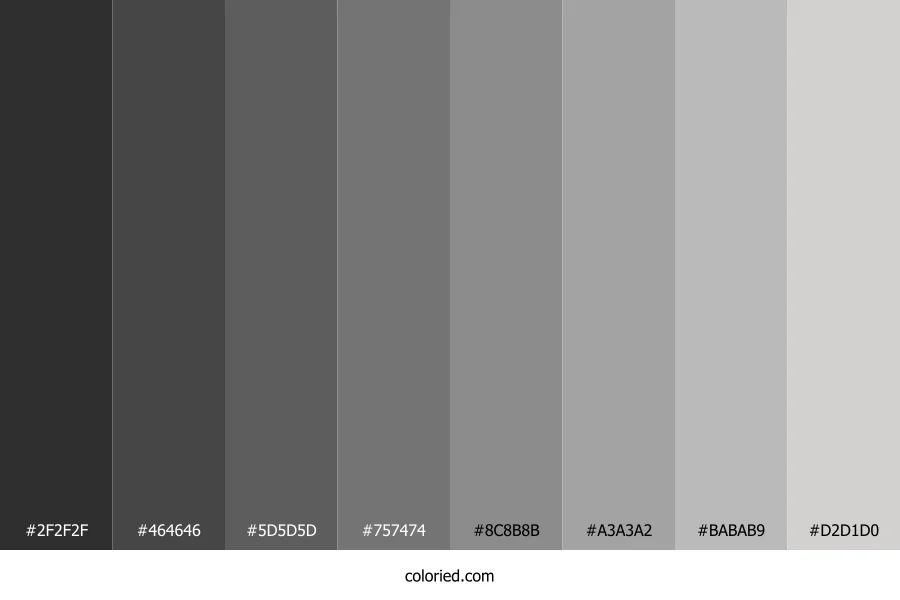 ![]() | #2F2F2F | 47, 47, 47 | 0, 0%, 18% | 0%, 0%, 0%, 82% | oklch(0.305 0.000 263) |