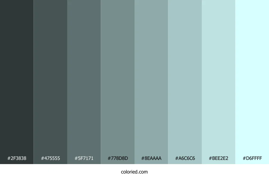 | #8EAAAA | 142, 170, 170 | 180, 14%, 61% | 16%, 0%, 0%, 33% | oklch(0.717 0.031 197) | |