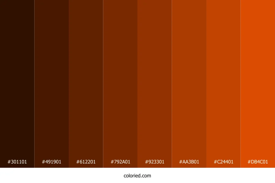 ![]() | #301101 | 48, 17, 1 | 20, 96%, 10% | 0%, 65%, 98%, 81% | oklch(0.223 0.058 48) |