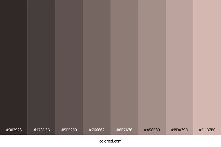 | #473D3B | 71, 61, 59 | 10, 9%, 25% | 0%, 14%, 17%, 72% | oklch(0.370 0.014 31) | |
