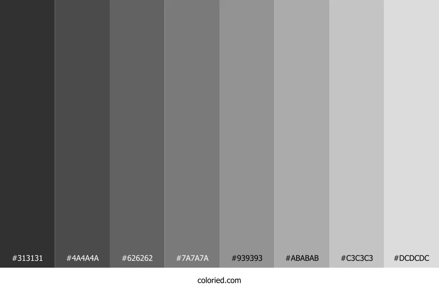 ![]() | #313131 | 49, 49, 49 | 0, 0%, 19% | 0%, 0%, 0%, 81% | oklch(0.313 0.000 263) |