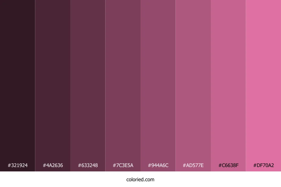 ![]() | #321924 | 50, 25, 36 | 334, 33%, 15% | 0%, 50%, 28%, 80% | oklch(0.252 0.043 353) |